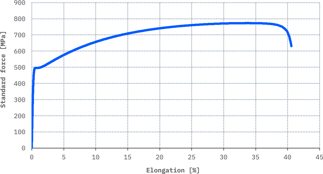 Rp0.2 492 MPa • Rm 773 MPa • Ag 33% • A50 40.3%